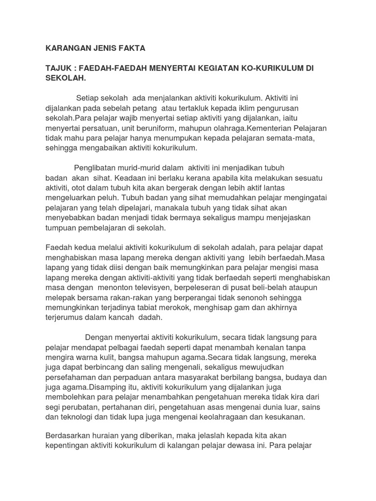 Contoh Karangan Jenis Fakta Sekolah Menengah